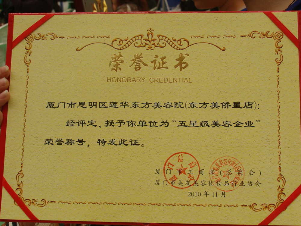 »2006年,东方美厦门侨星美容SPA会所被评为福建省首家“五星级”美容院