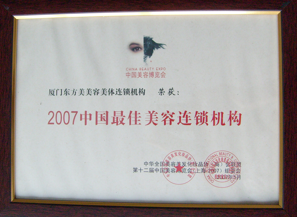 »2007年,东方美被评为中国最佳“美容连锁机构”
