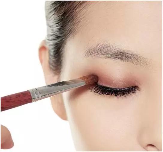 首先,从睫毛根处开始着色(也就是从眼睛的尾端开始着手),然后慢慢的向上、向前晕染,最后在不均匀之处将眼影涂抹均匀。